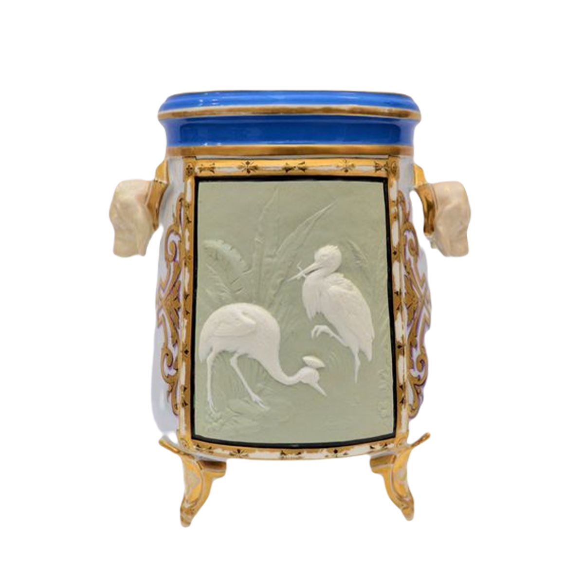 By the way, this vase, which I found in Rennes, is unusual in many ways. Pay attention to the large heads of dogs, which apparently served as handles. And the central panel, subtly depicting marsh birds, is generally made in the recognizable technique of the famous English manufactory WEDGWOOD. And it is so unexpected, as well as, it should be admitted, beautiful.