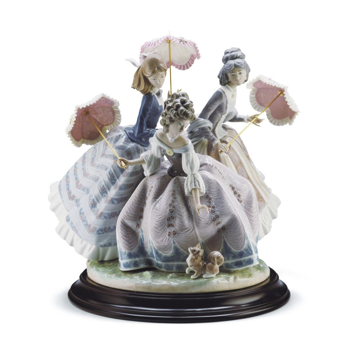 And one of the works that replaced the beautiful Chinese sisters was today's composition dedicated to three Spanish sisters. There was probably no connection between them. Well, except for the fact that the thinnest translucent umbrellas in the hands of the Spanish sisters were created using Chinese silk, which is put into the product by porcelain makers, and during firing in the oven (at a temperature of 1200-1300 degrees), burning, forms a lot of thin holes that make a fragment of a porcelain product (either a frill of a woman's dress, or an umbrella) airy translucent. And if you still manage to see the smallest flowers that adorn the umbrellas in this composition, as well as the texture of the fabric that conveys the beauty of the sisters' dresses, as well as the facial expressions of the heroines and thin fingers, then you can definitely understand why, out of thousands of other works, this work is one of the most memorable in our collection.