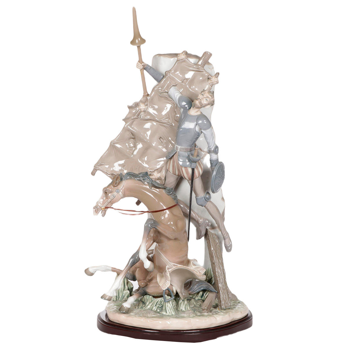 Вічна тема іспанської порцеляни – Дон Кіхот... Яких тільки порцелянових справ майстри його не зображали! І з вірним Санчою Пансою, і з дамою серця Дульсинеєю Тобоською, і у возі, запряженому втомленими волами, і з розкритою книгою під час поглинання філософських премудростей. Я вже одного разу розповідав про виставку фарфорових композицій, присвячених Дон Кіхоту, яку багато років тому представники валенсійської мануфактури Lladro проводили у Київському театрі ім. Лесі Українки.