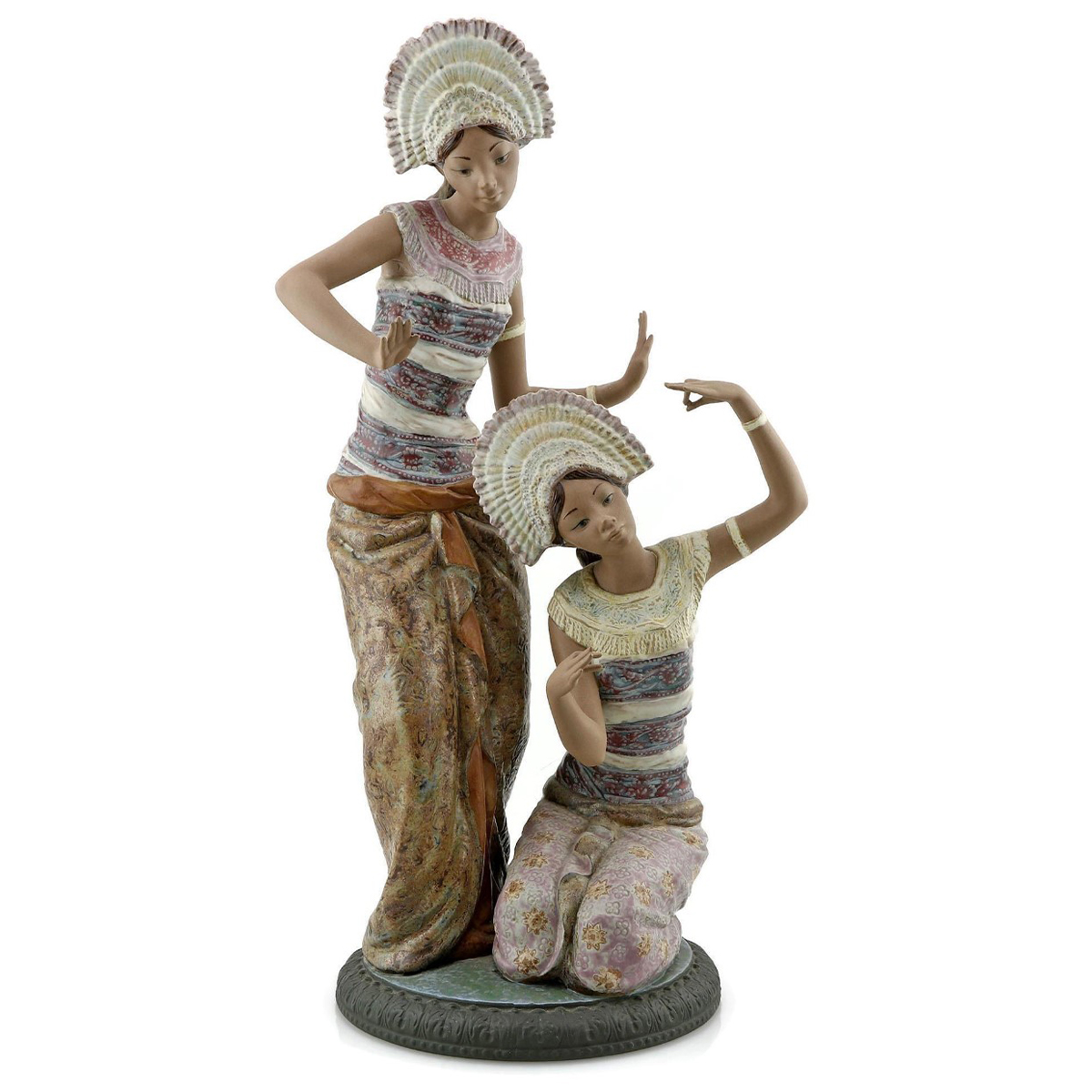 Танцівниць на острові Балі ми тоді не зустрічали. А от одягненими в такий же одяг були служниці готелю, в якому ми знаходилися ці кілька днів. Представлену вашій увазі композицію я років через десять після відвідин Балі знайшов на одному з австралійських "порцелянових" сайтів - і ніби поринув у солодкі екзотичні спогади. З того часу вона і знаходиться в нашій колекції, радуючи око та гріючи душу своєю незвичайною красою. На щастя, незважаючи на досить великий розмір, дійшла вона до нас без найменшого пошкодження.