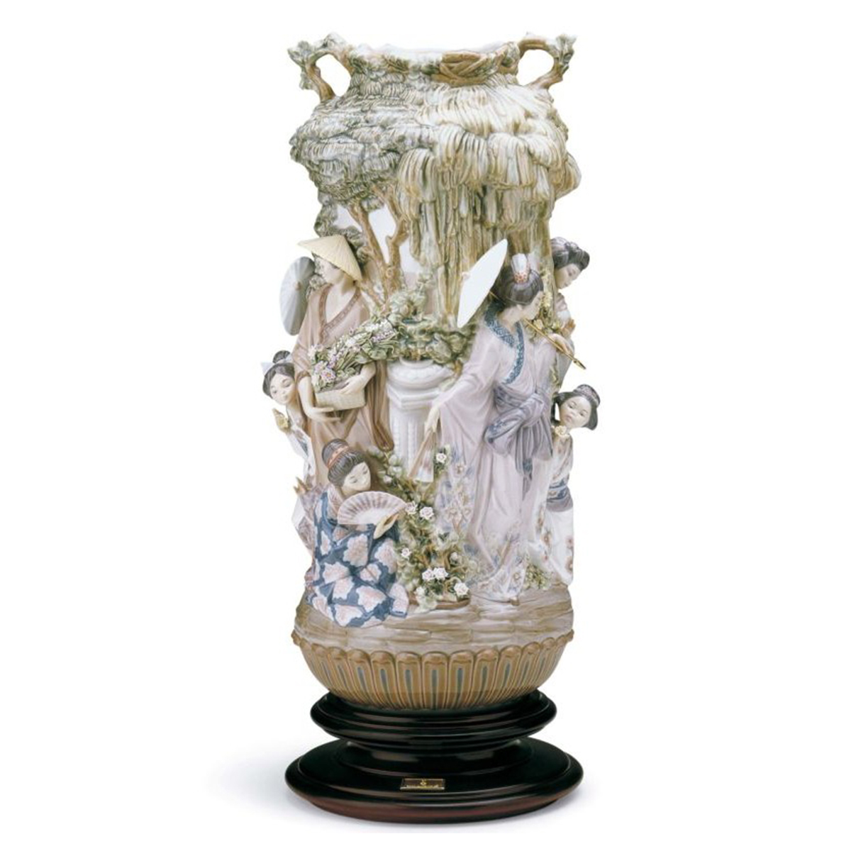 Але чому мені хочеться познайомити вас із цією іспанською порцеляновою композицією? Та тому, що такої вази, присвяченої японській тематиці, ні до зустрічі з цією роботою, ні після я більше не зустрічав. Адже це не просто ваза в традиційному розумінні слова. Не просто посудина, майстерно розписана майстрами і обпалена в печі. Це багатостильовий твір порцелянового мистецтва, що демонструє чи не всі техніки створення порцелянових композицій.